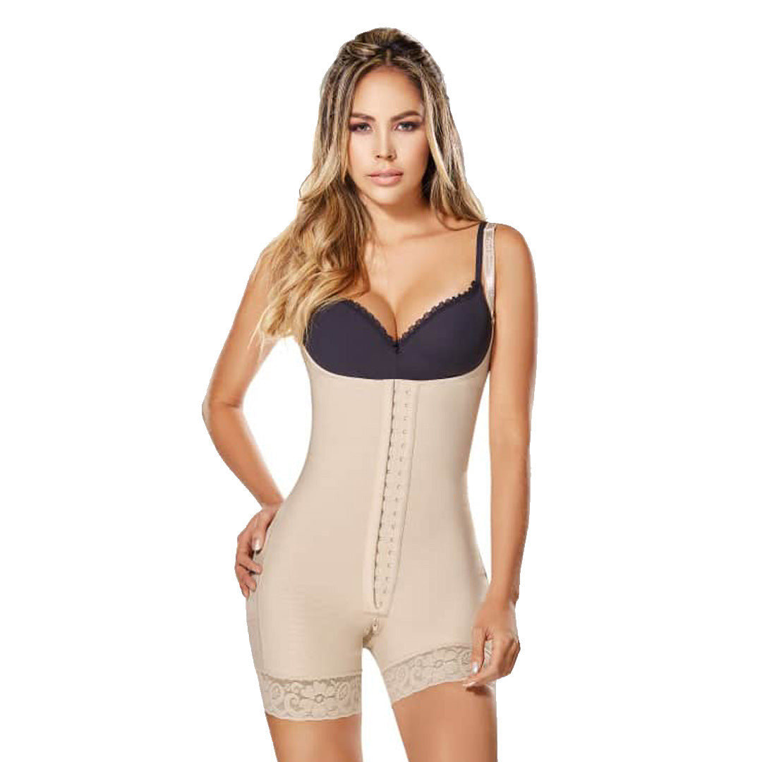 Compresión alta con tratamiento interior de Microcápsulas que mejoran el tono de la piel, evitan que la faja tome mal olor y ayudan a eliminar toxinas.