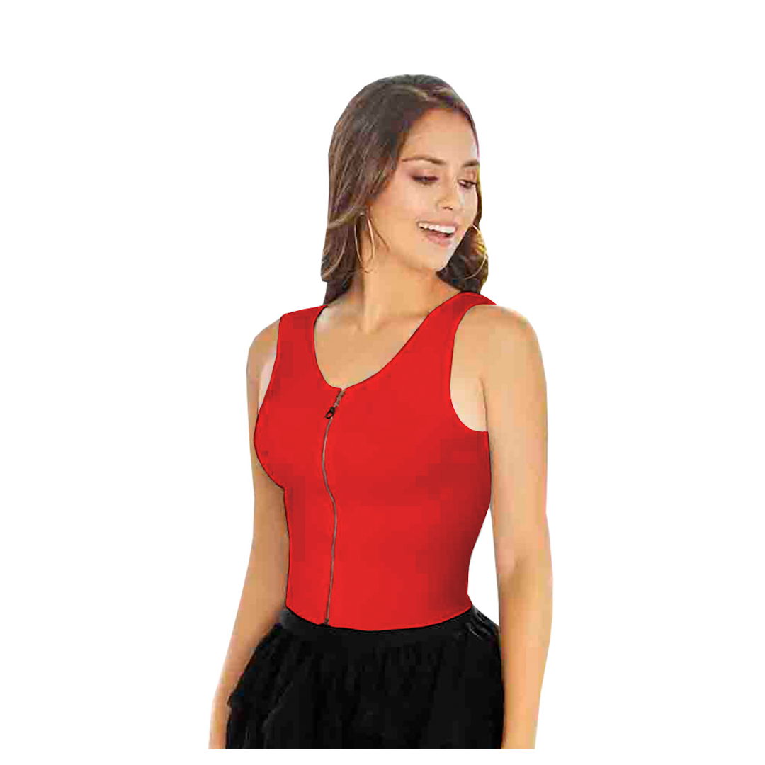 Polera de Moda con cierre frontal, escote espalda y manga sisa R1-10123