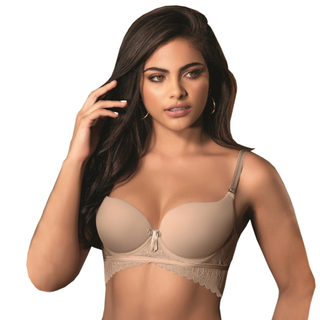 Sostén en encaje y micro fibra con copa transpirable de realce medio.