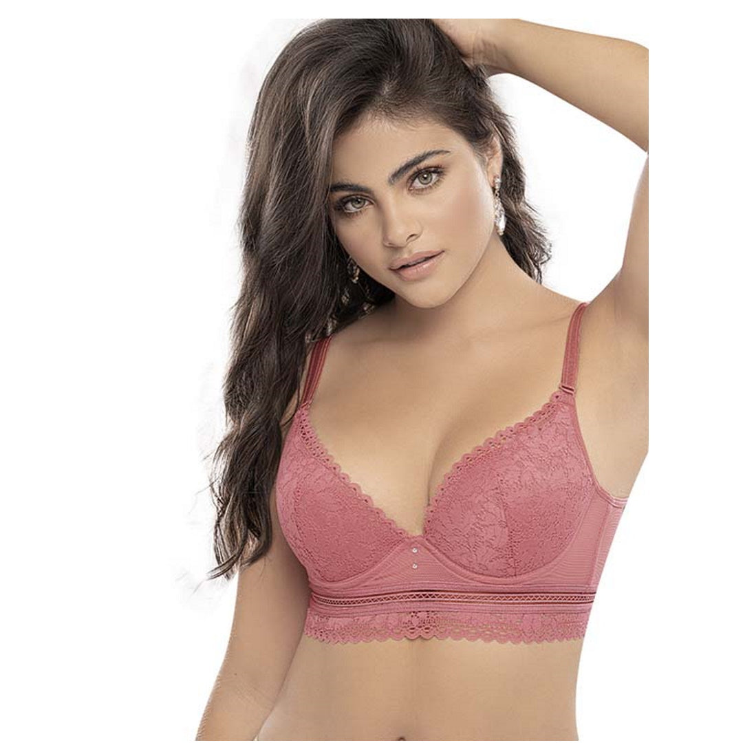 Sostén estilo bustier en encaje, espalda con mayor cubrimiento, abrochadura 3X6.